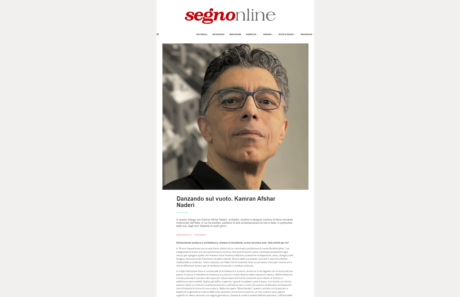 Kamran Afshar Naderi is an Iranian-Italian artist, designer and architect who has attended his studies at Conquer Institute of arts (Tehran), Faculty of Fine Arts (at Tehran University) and Faculty of Architecture of Genoa (Italy). He is the co-founder of Memar Magazine and Memar Awards for architecture. He has been a prolific writer and critic of architecture, publishing over 200 articles and co-authored several books. He is a frequent guest lecturer at universities and conferences in several Asian and European Countries.