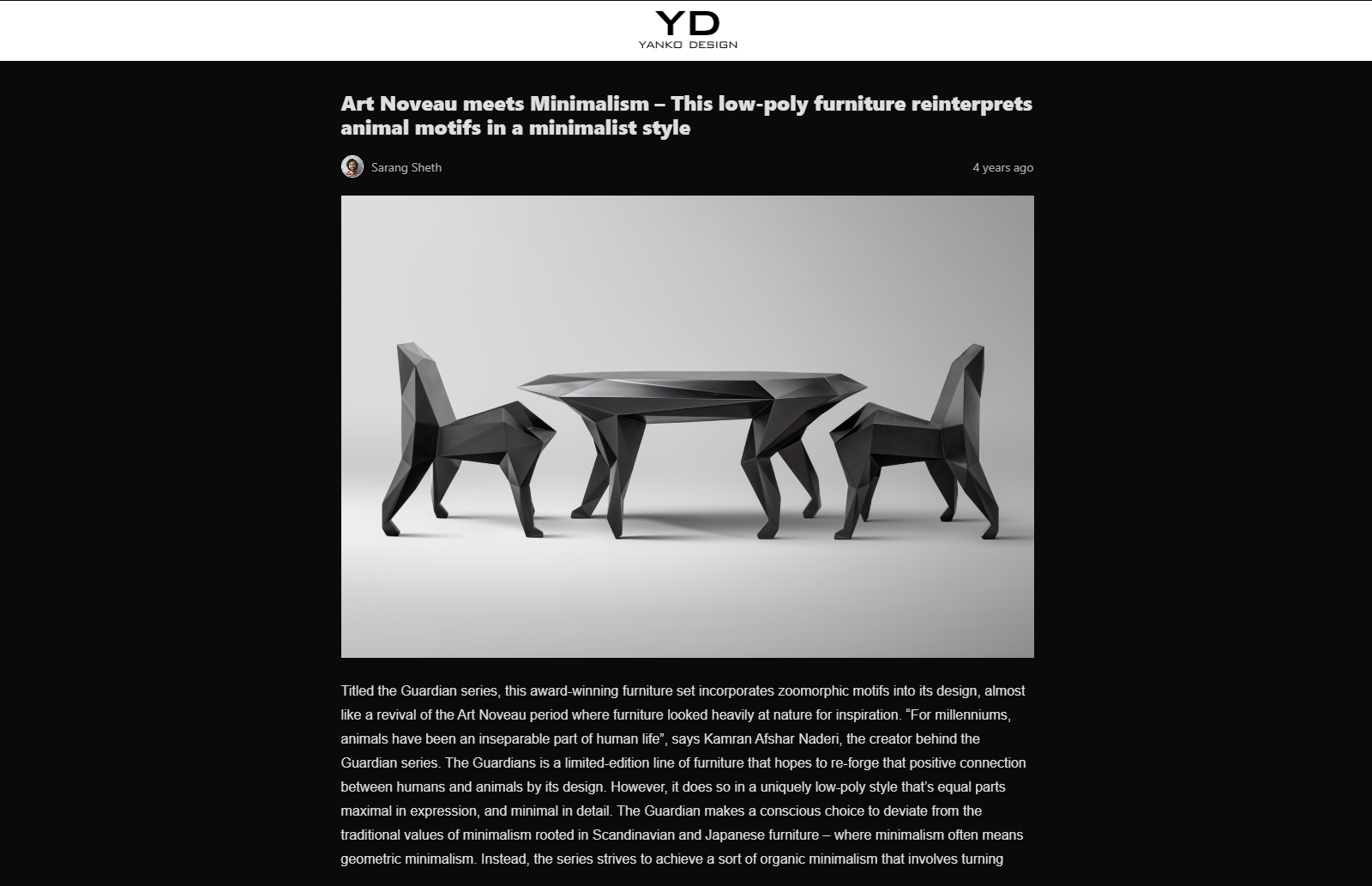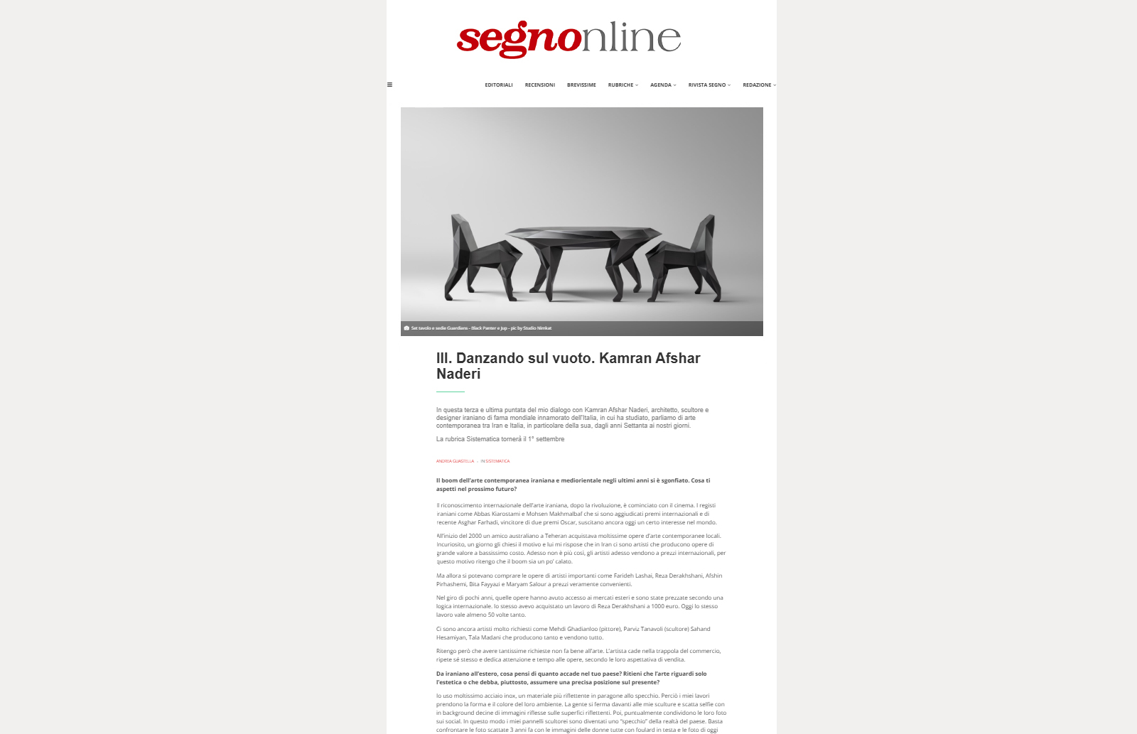 The zoomorphic form of the collection “Guardians” is based on various animal anatomy studies. Since ancient times, the zoomorphic shapes were broadly used by Iranian artists. The capitals used in the Persepolis complex are a representation of griffin or bulls. The legs of Achaemenid thrones were conceived in the form of a lion's leg.